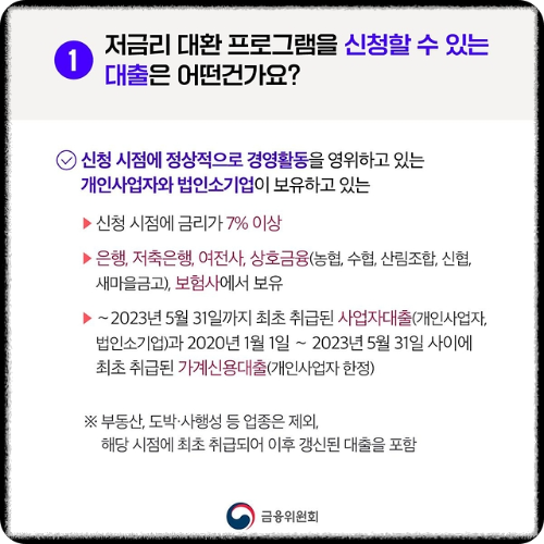 - 신청 시점에 금리가 7% 이상의 대출을 갖고 있다.